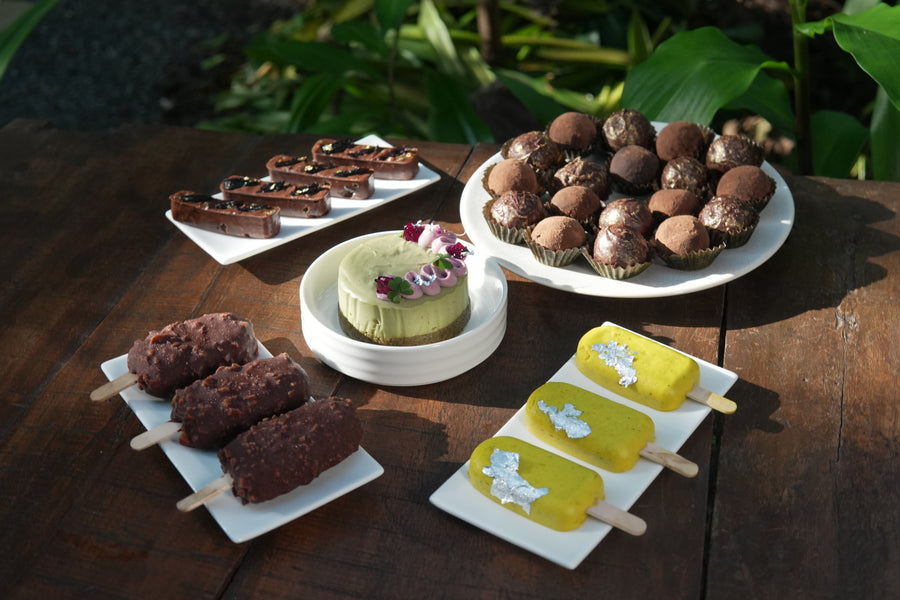 Create refined chocolate confectioneries including cashew tonka bean tablets, hazelnut rocher tablets, pineapple–passion fruit pâté de fruit ganache squares, chocolate kaju katli, berry pâté de fruit squares, apricot pâté de fruit squares, date and nut snack bars, hazelnut orange snack bars, paan truffles, hazelnut rochers, besan ladoo rochers, chai-spiced bon bons, coffee bon bons, strawberry basil bon bons, and lemon cheesecake bon bons.