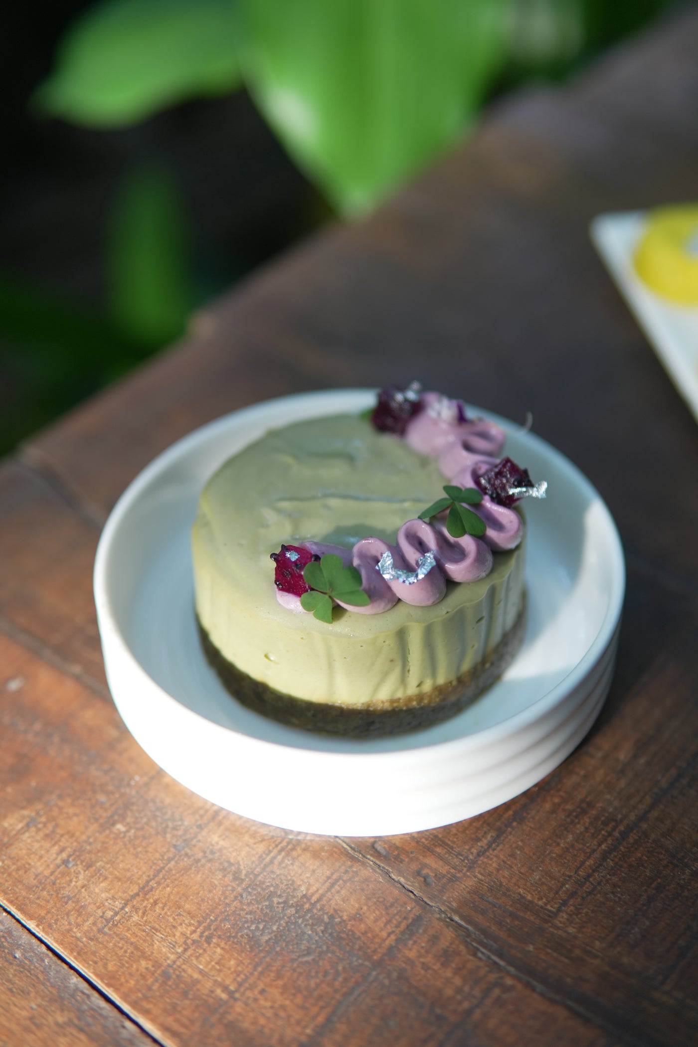 - Baked NY cheesecake with pineapple-kiwi-mint jelly