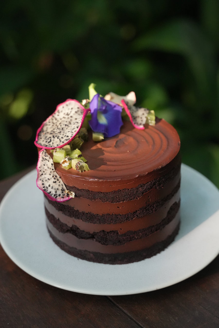 - Chocolate mousse cake (chocolate sponge, avocado mousse, fruit)